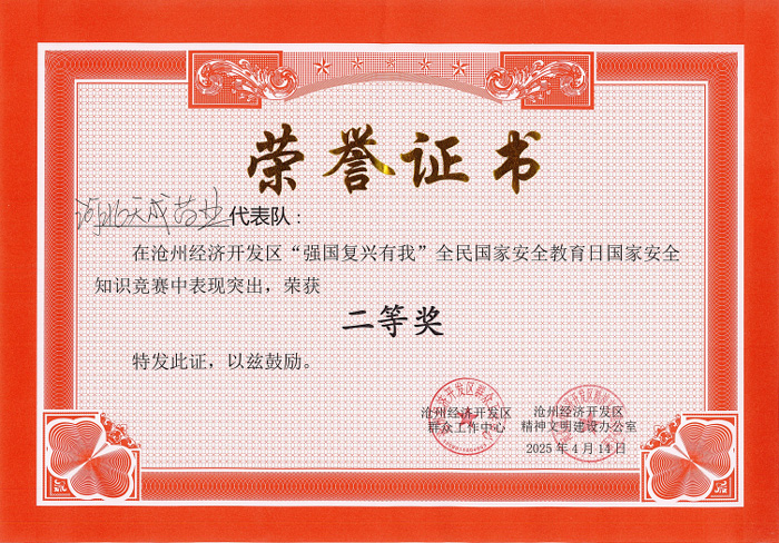 为切实增强企业职工国家安全意识,营造维护国家安全的浓厚氛围,4月14下午,河北省沧州经济开发区群众工作中心联合区精神文明建设办公室举办了以“强国复兴有我”为主题的国家安全知识竞赛,包括我单位在内的6支代表队参赛。