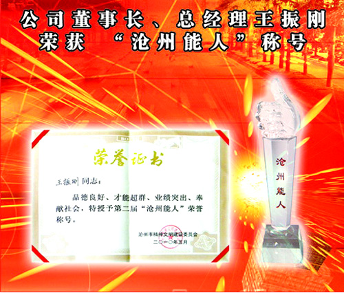 公司董事长、总经理王振刚荣获 “沧州能人”称号