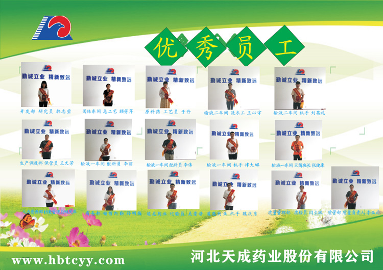 8 律大蟒 输液一车间 制袋灌封 他虚心学习,不断完善自身技能,提高业务能力,很好的完成本职工作。他不忘帮助身边同事,在岗位上营造了良好的氛围。
